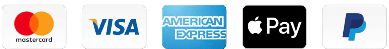 Credit cards, Apple Pay, PayPal - you pick! All payments are securely processed via SSL protocol through PayPal and Stripe.